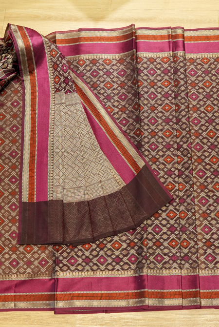 Brown banarasi cotton patola wave saree