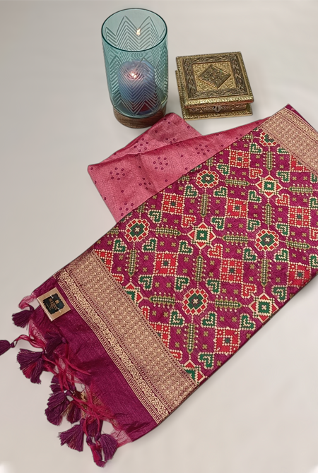 Pink and magenta patola palav semi tusser saree